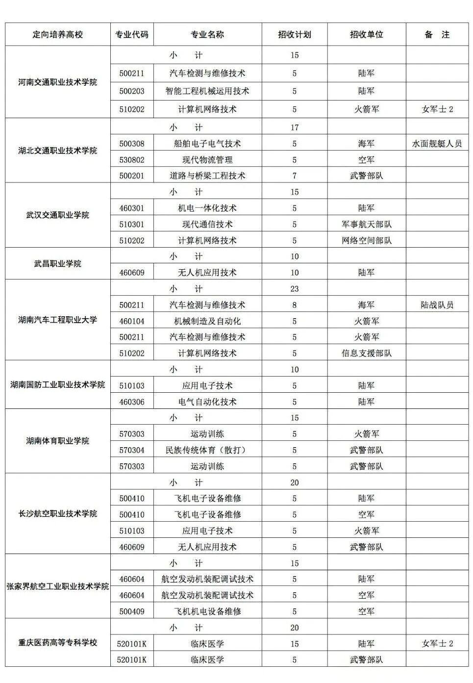 2025年定向军士招生计划表